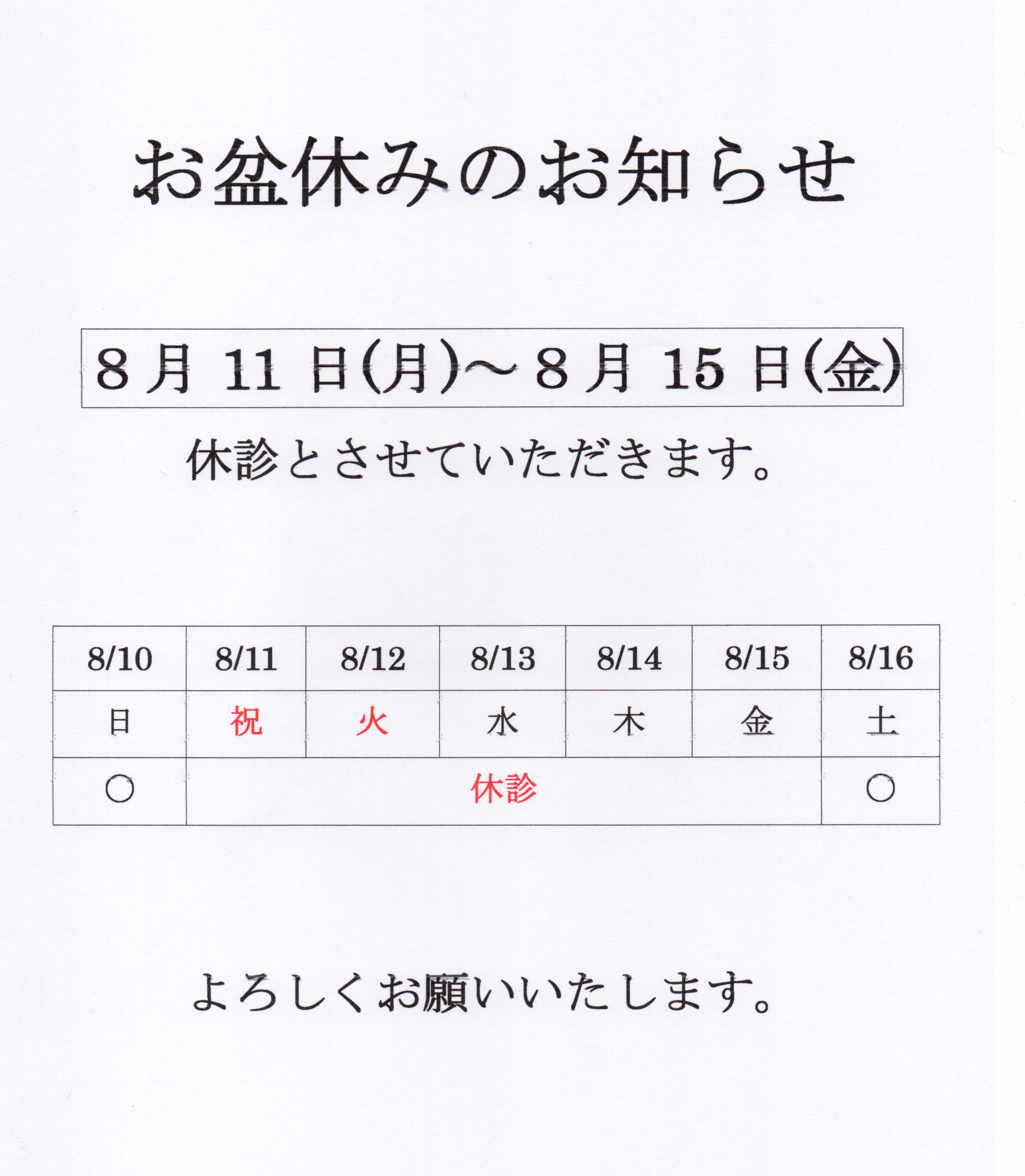 ここで、年末・年始のお休みについてお知らせをさせていただきます。 本年は12月29日(月曜日)まで診療しております。